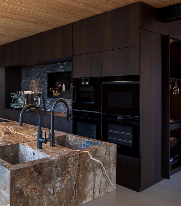 stuhl sowie fünf Schlafzimmern und Bädern entsteht in nachhaltiger Bauweise und begeistert mit Interieur und Exterieur vom Feinsten: vortreffliche Vollmöblierung, ökologisches Heizsystem, Smart-HomeSteuerung, Wellnessoase, Outdoor-Pool, großzügige Sonnenterrasse, Doppelgarage und Lift. Zudem erwartet Sie eine weitere, ganz erlese ne Besonderheit: Ihr hauseigenes Vinariat. Kurzum: edle Materialien, modernes Möbeldesign und intelligente, nachhaltige Detaillösungen, wohin das Auge reicht.