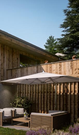 sollen zwei Chalets mit insgesamt vier Wohneinheiten errichtet wer den. Die Aufteilung der Räume erfolgt im gefragten Chalet-Style: Die Schlafzimmer mit Bädern en suite befinden sich im Erdgeschoss, darüber bietet ein großzügiger, offener Wohnbereich mit Living Area, Esszimmer und Küche entsprechend viel Platz für Gäste oder traute Zweisamkeit. Im Keller wird je nach Kundenwunsch ein Wellness- und Fitnessbereich oder ein Gästezimmer eingerichtet. „Kitzbühel ist für die Lebensfreude da.“ Ob Hahnenkamm-Abfahrt, das Zentrum mit seinen Cafés, Bars und Restaurants oder die edlen Bou tiquen, alles ist in wenigen Minuten zu Fuß erreichbar. Nur 750 Meter entfernt finden sich zwei Golfclubs. Aber auch bekannte Hotspots wie der Promi-Treffpunkt Rosi’s Sonnbergstuben und der Berggasthof Hagstein liegen beinahe vor der Haustür. Bei allem Angebot in der Nähe zählt für das Team von Maximilianhof Immobilien aber die Ruhe: „Die wohltuende Stille am Aschbachweg hat uns überzeugt und wird die künftigen Bewohner begeistern!“