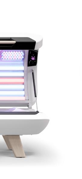 wie ein luxuriöses, stilvolles Möbelstück und fü gen sich harmonisch in Ihr Zuhause ein. Details aus gebeizter Eiche (Handgriff und Füße, FSCzertifiziert) und die matte Optik der Geräte zei gen die Liebe zum Detail. Das edle Design des DAYON LightSpa ist für den German Design Award 2023 nominiert. Die LightSpa-Serie ist besonders kompakt, nur 150 kg schwer und fügt sich selbst auf kleinstem Raum passgenau ein. Die ergono mische, satinierte Liegefläche bietet höchsten Komfort. Für zusätzliche Entspannung sorgen ein flüsterleiser Lüfter und auf Wunsch wohltuende Aromadüfte wie naturbelassenes Zirbenöl.