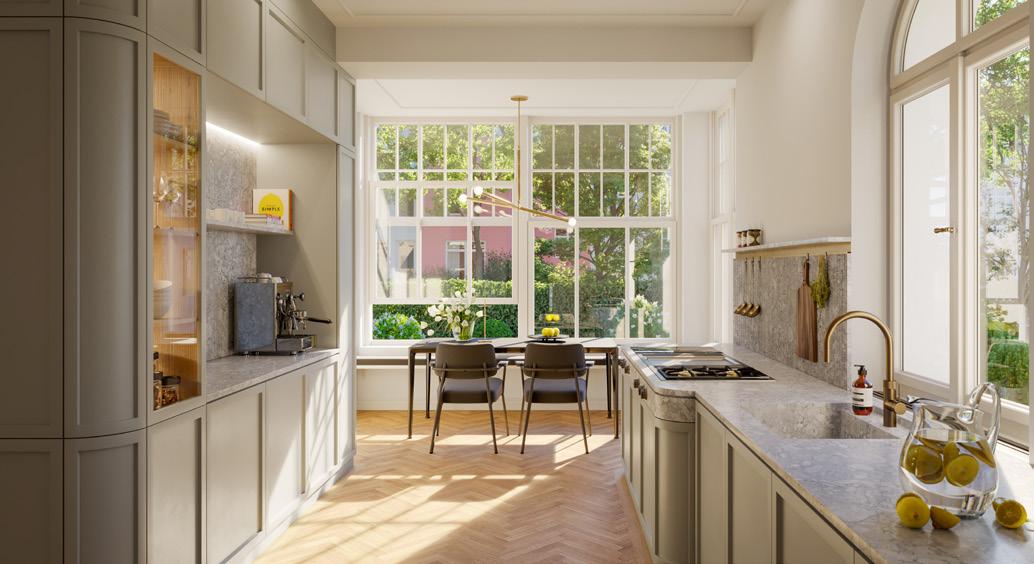 Alle Wohnbereiche erhalten hochwertige raumhohe Fensterelemente, die den Wohnbereich fließend nach draußen erweitern. Als Sonnenzimmer schaffen die großzügigen Loggien und Terrassen zusätzliche Erholungsräume im Freien und unterstreichen den offenen Charakter der EDITION MA29. Da das Anwesen durch die großen, mit altem Baumbestand umsäumten Abstände zu den Nachbarhäusern kaum einsehbar ist, erhalten die Terrassen und Loggien außerdem hochwertige Glasbrüstungen, die den Blick in die grüne Umgebung freigeben. Besonders beeindruckend ist diese Wohnqualität in den beiden Penthäusern: Durch die zurückgesetzten Terrassen- und Dachflächen bieten diese einen beeindruckenden Rundumblick über das prachtvolle Villenviertel.