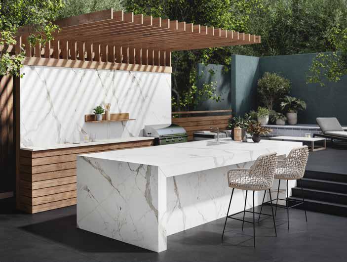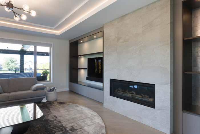 “It is cost-effective and very durable, making it a great alternative to marble slabs, especially on wall treatments,” he says, pointing to a recent project where they surrounded a wall insert fireplace with marble-look Neolith slabs.