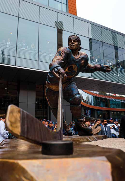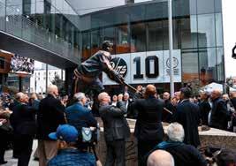 Family, friends, fans & officials gather round for the unveiling of the Dale Hawerchuk statue at True North Square.