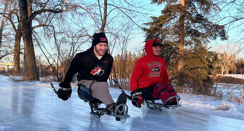 On Jan. 21, I had the pleasure of interviewing McGregor at Calgary’s Bowness Park after Tyler had just finished sledge skating 41 kilometres. (He skated his 42nd kilometre later that day at Calgary’s Scotiabank Saddledome in the second intermission of the Hockey Day in Canada game between the Calgary Flames and reigning Stanley Cup finalist Tampa Bay Lightning.) During the morning, he was accompanied by Calgary Flames alumni Jamie Macoun and Mason Raymond, along with his para ice hockey teammate Chris Cederstrand of Calgary, and former Montreal Canadiens draft pick Brad Layzell.