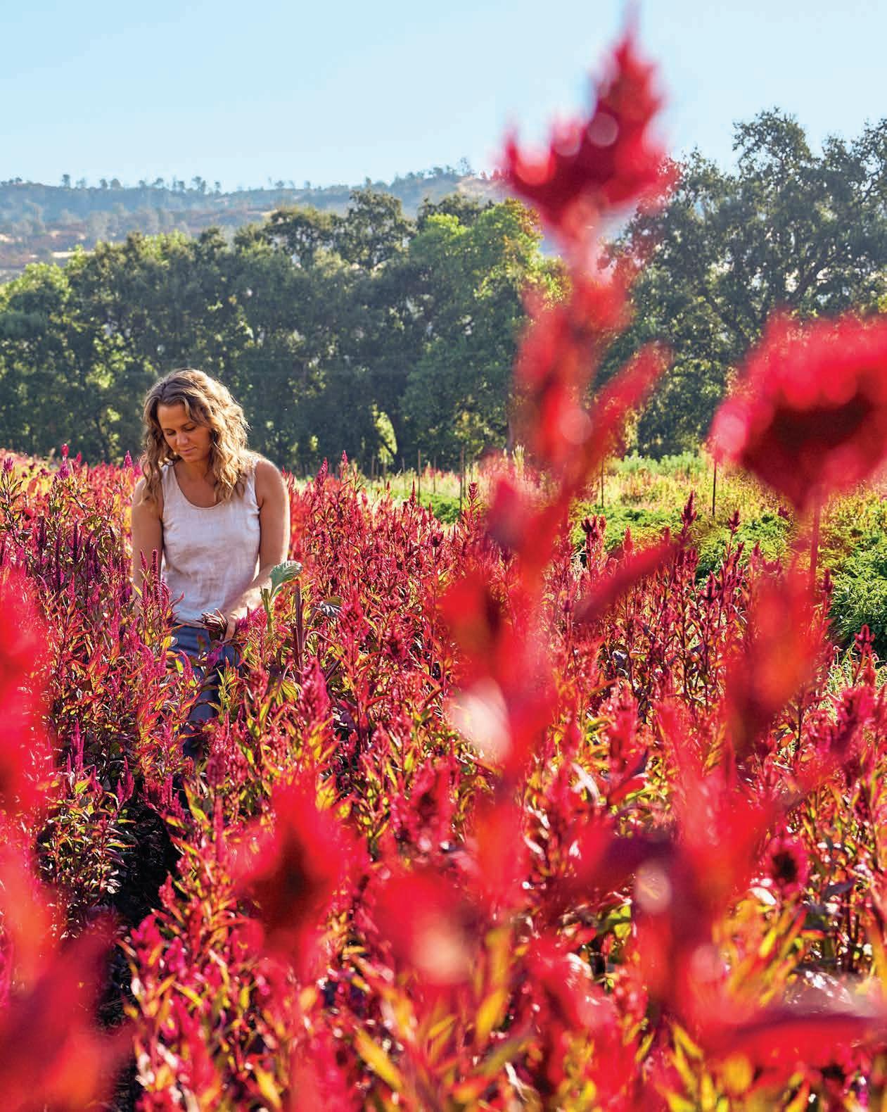 Hannah Rose Rivers Muller in the flower fields at Full Belly Farm.