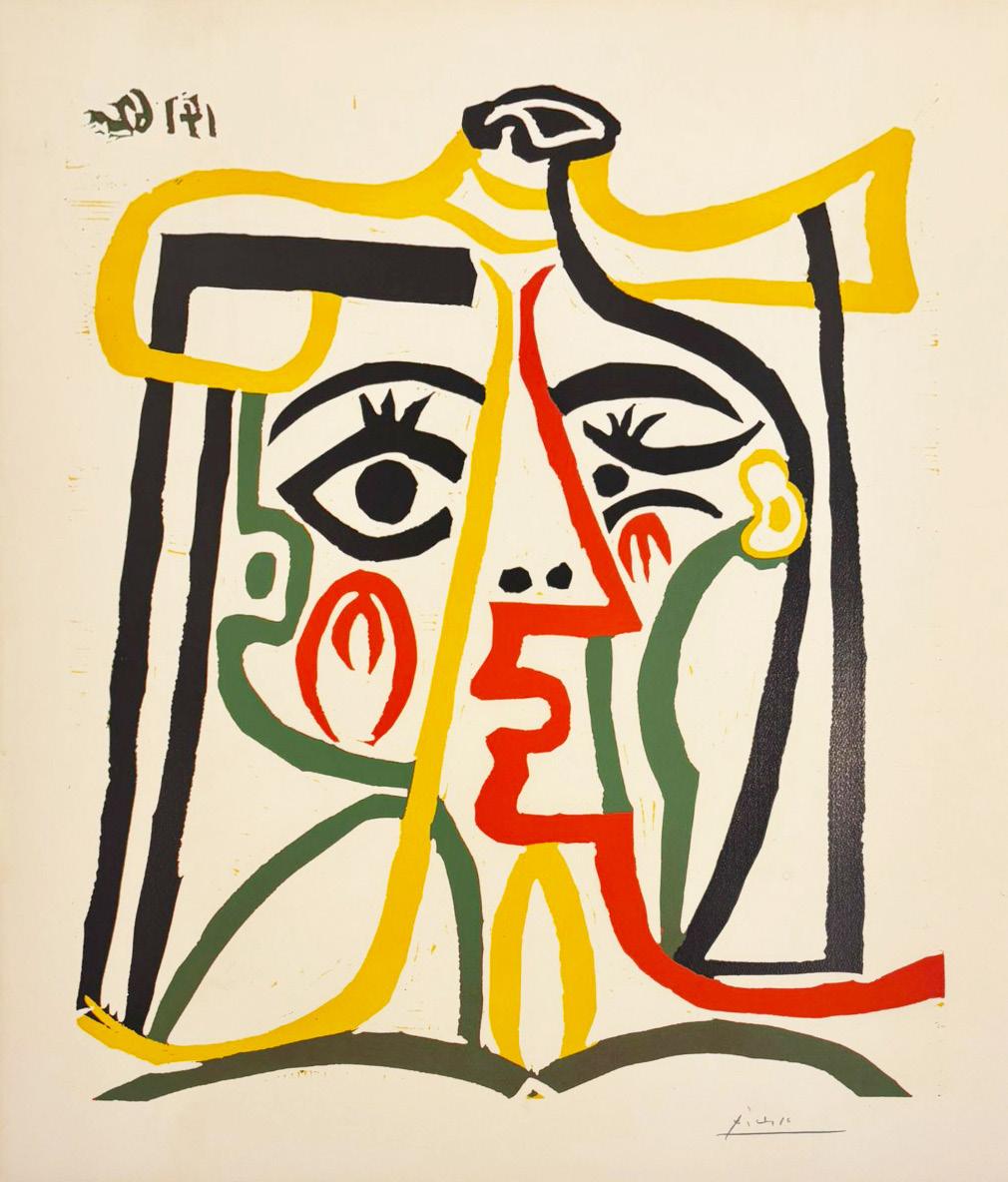 Two masterful linocuts from 1962, Buste de Femme au Chapeau and Portrait de Jacqueline au Chapeau de Paille, embody the artist’s unfettered joy during this period.