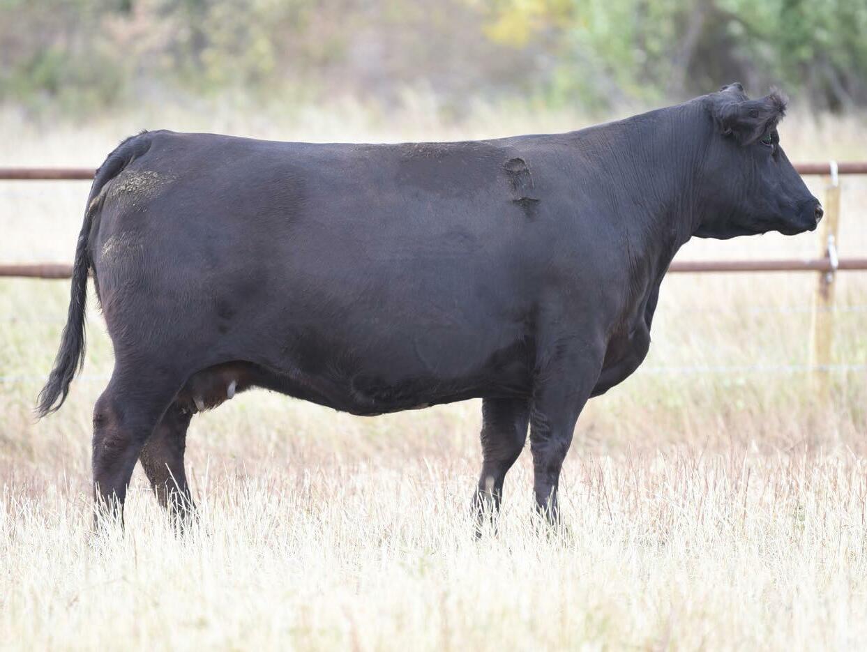 AI bred to LFE Stratton 3094F on April 10, 2022. Pasture exposed to DMF Diamond M Bull 767E from May 26 to August 10, 2022. Preg checked 5 months in calf on October 15.