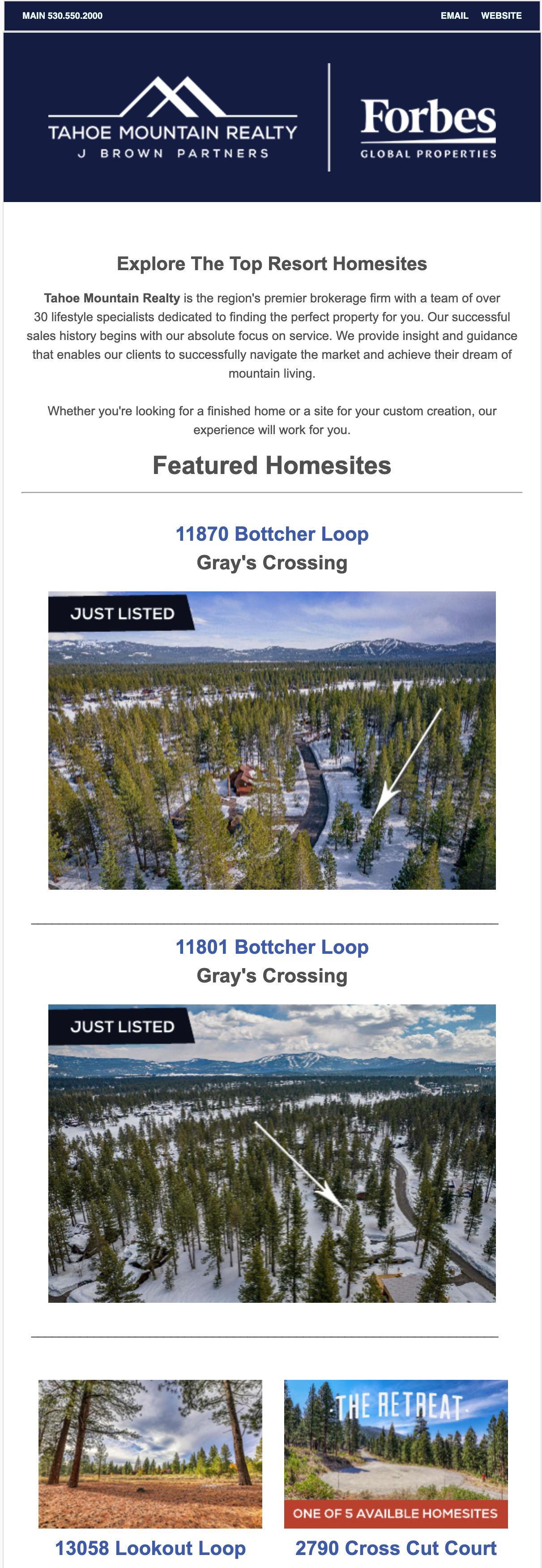 Our high-traffic brokerage website and blog appeal to luxury, Tahoe buyers and feature all current TMR listings by community location