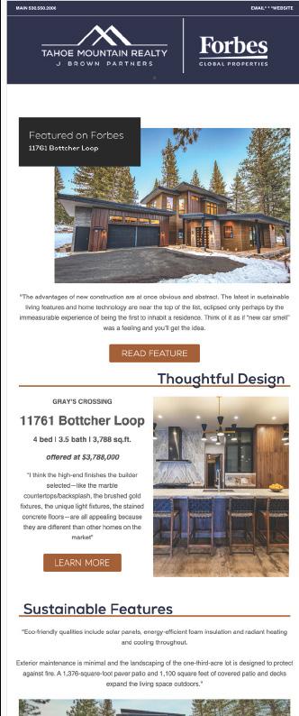 Our high-traffic brokerage website and blog appeal to luxury, Tahoe buyers and feature all current TMR listings by community location