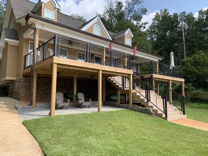 Elaborate Escapes Facing Page: The highly anticipated store is set to open this month in Dadeville; Clockwise From Top: Luxury designs are a signature element of the company; Design options include water features and pools; Together, the Winfreys expanded their dream to Lake Martin.