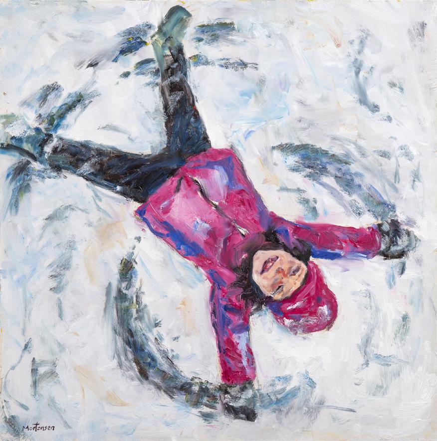 Clockwise from Left: Billy's Seafood by Cecil Thompson; Honorable Mention Art, Snow Angel by Mark Mortenson; Kingfisher by Jacquelyn Swain; Morning Swim by Keith Smith; Camp of Hills by Jacoby Davani.