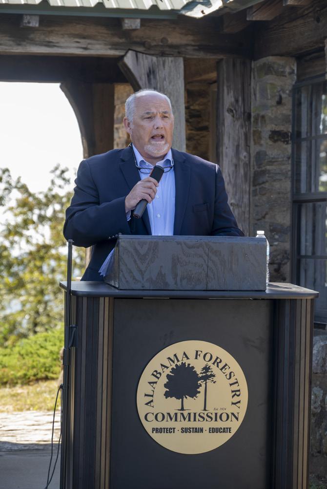 Alabama Department of Veterans Affairs public information officer Brandon Miller presented Bennett with a commendation from Gov. Kay Ivey.