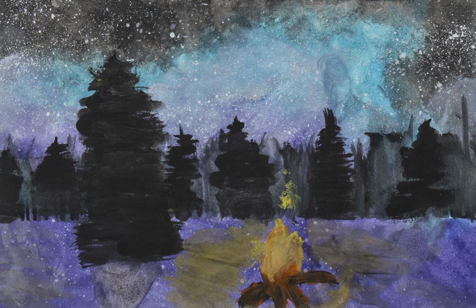 Everything that has breath praise the Lord by John Raines; Campfire by Chelsey Swanger; Lake Laundry by Debbie Blackmon; Cruising by the Fire Tower by Ildi Andrews; Pink Clouds by Dotty Smith.