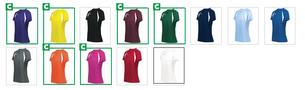 100%polyesterwickingknitwithcolorsecure® technologythathelpspreventdyemigration Moisturewicking,v-neckcollar,raglansleeves, contrastcolorinserts