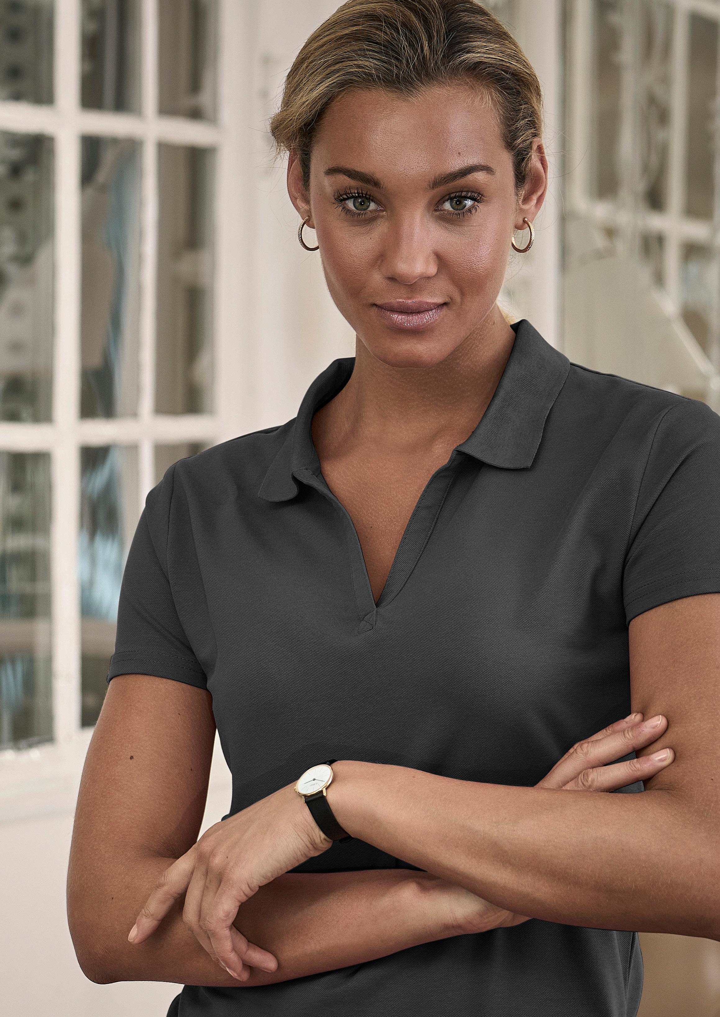 The Womens Luxury Stretch V-neck Polo is an elegant women’s polo shirt made of organic cotton and elastane for a flexible and comfortable polo shirt, with a perfect fit. With its v-neck, the polo shirt has a vibrant and young look.