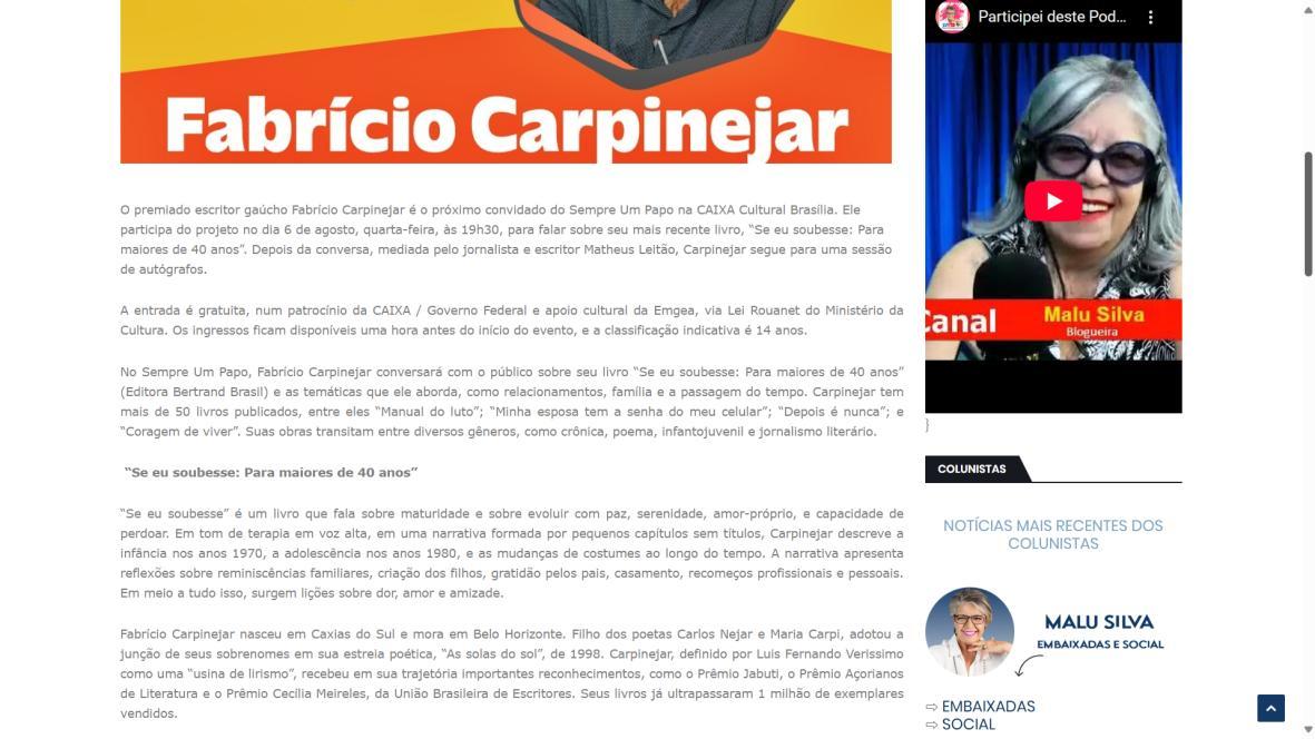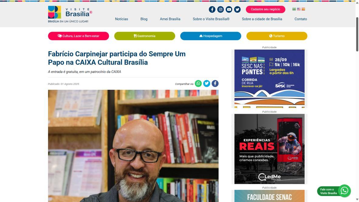 Caixa cultura Brasília recebe Fabrício Carpinejar no projeto literário "sempre um papo" - Brasília ETC