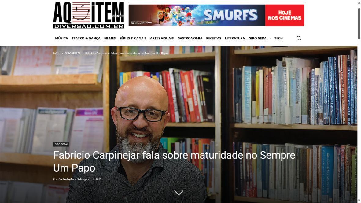 Fabrício Carpinejar fala sobre maturidade no Sempre Um Papo - AQUI TEM DIVERSÃO