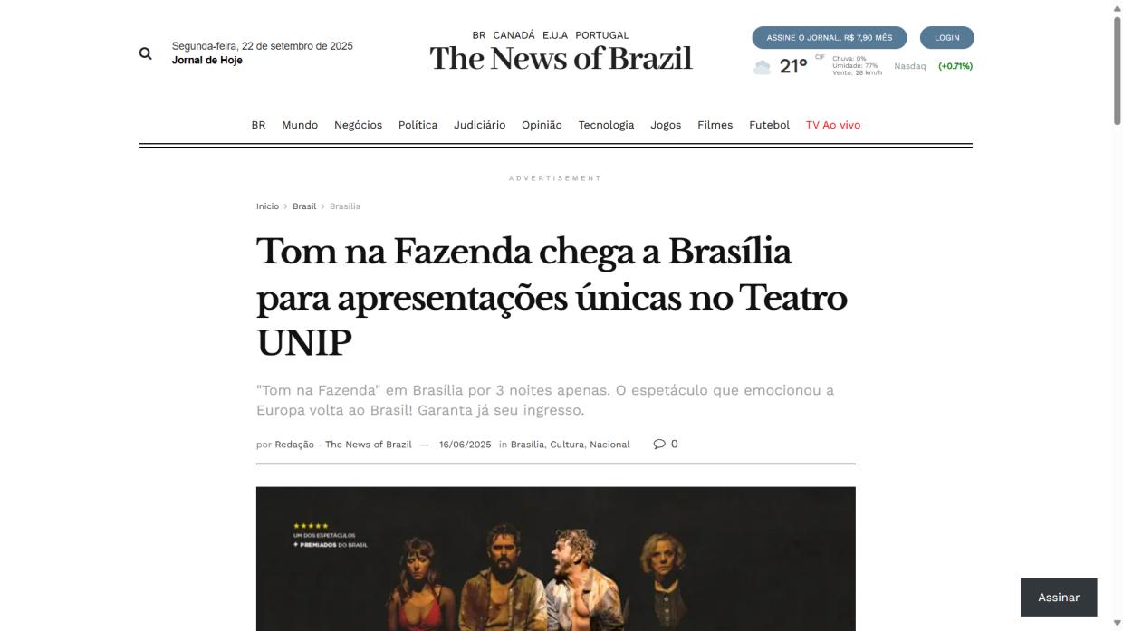 Tom na Fazenda chega a Brasília para apresentações únicas no Teatro UNIP – The News of Brazil