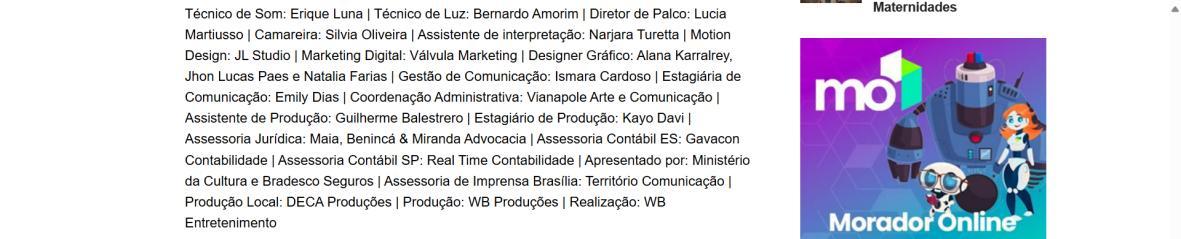 O teatro possui acessibilidade para PCD e espaços adequados no ambiente do teatro. Teremos intérprete de libras em todas as apresentações. O programa do espetáculo será disponibilizado em Braile