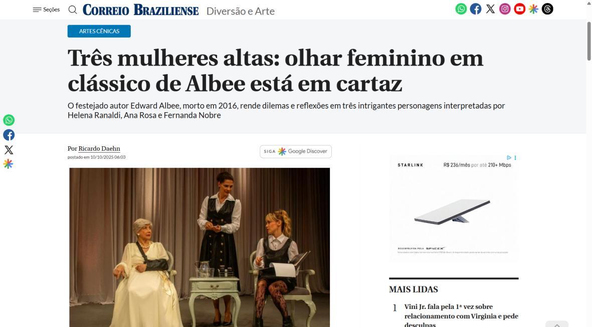 “Três Mulheres Altas” chega ao Teatro Unip esse fim de semana | Jornal de Brasília