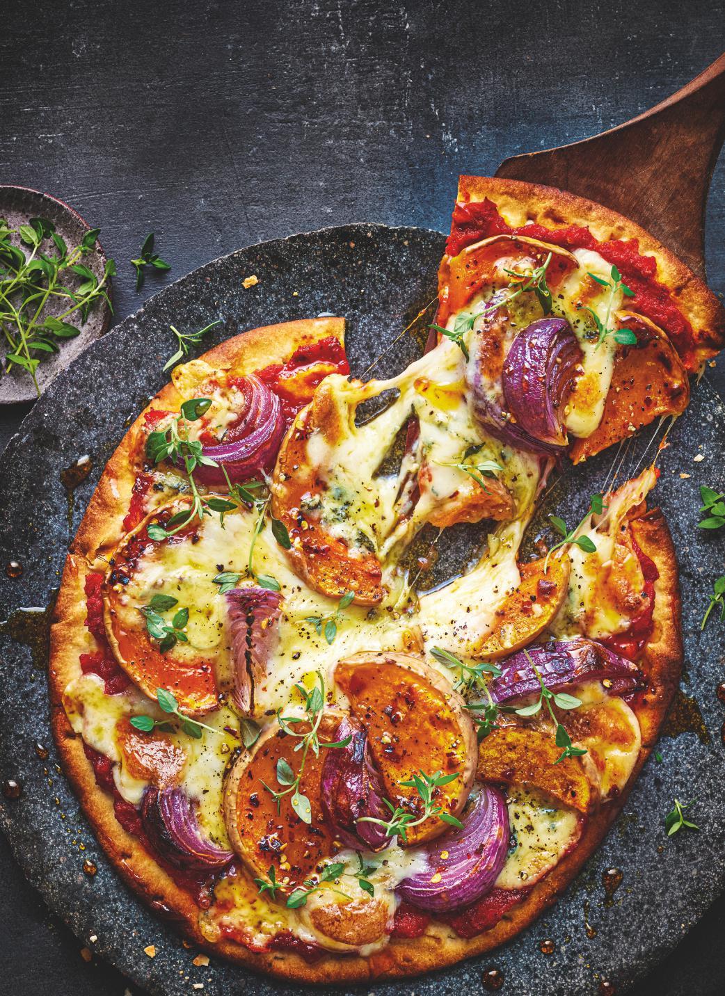 COVER RECIPE Pumpkin & blue cheese pizza, p62