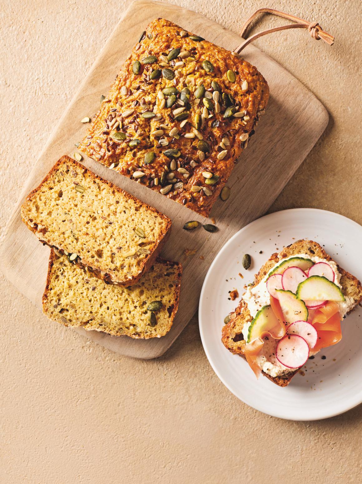 4 Toast the bread and spread the whipped cottage cheese over each slice, then pile on the roasted veg and spoon over the walnut and tomato mixture. Enjoy!