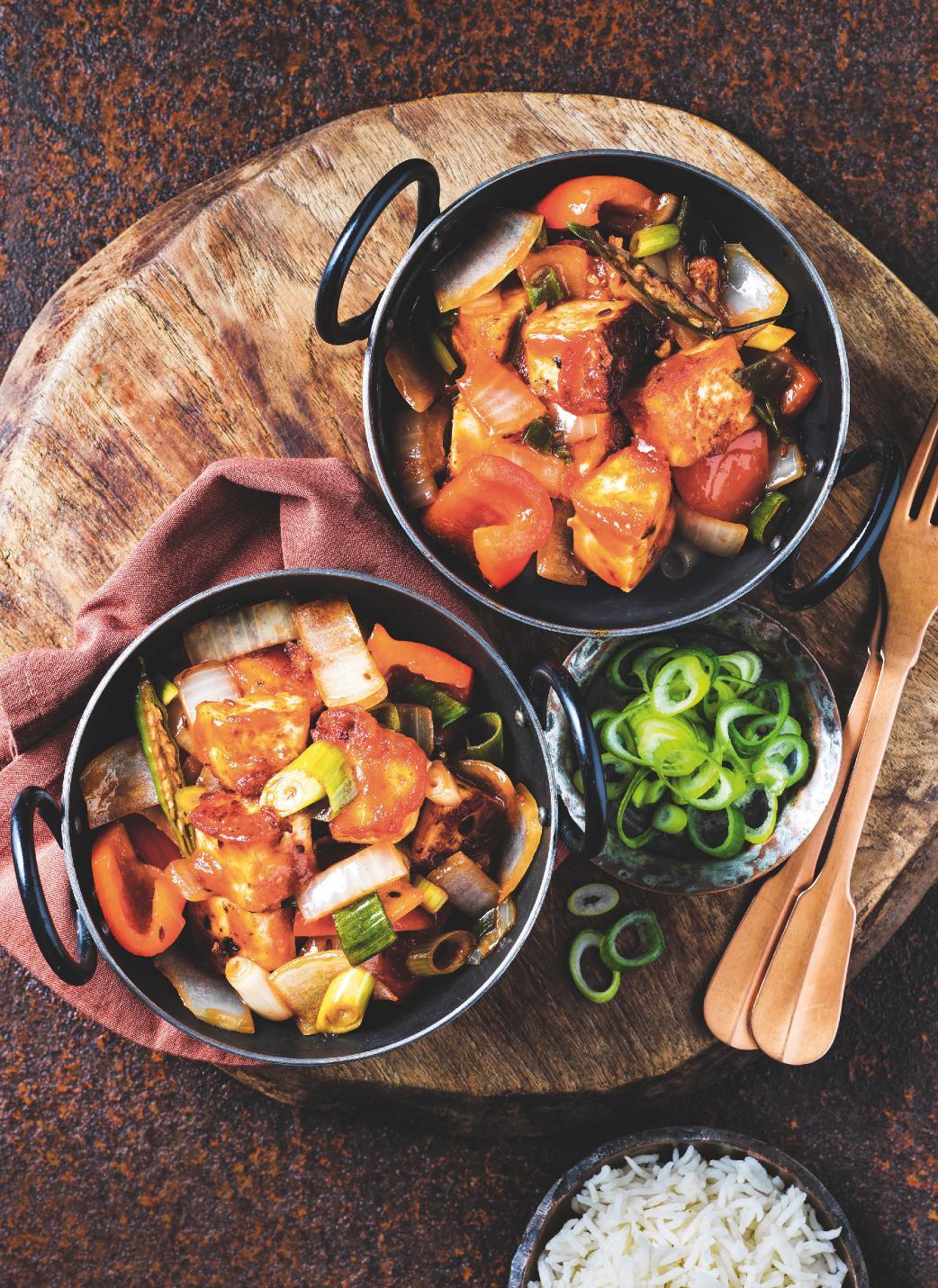 Peanutty chicken & sweet potato stew 69 Prawn jalfrezi 51