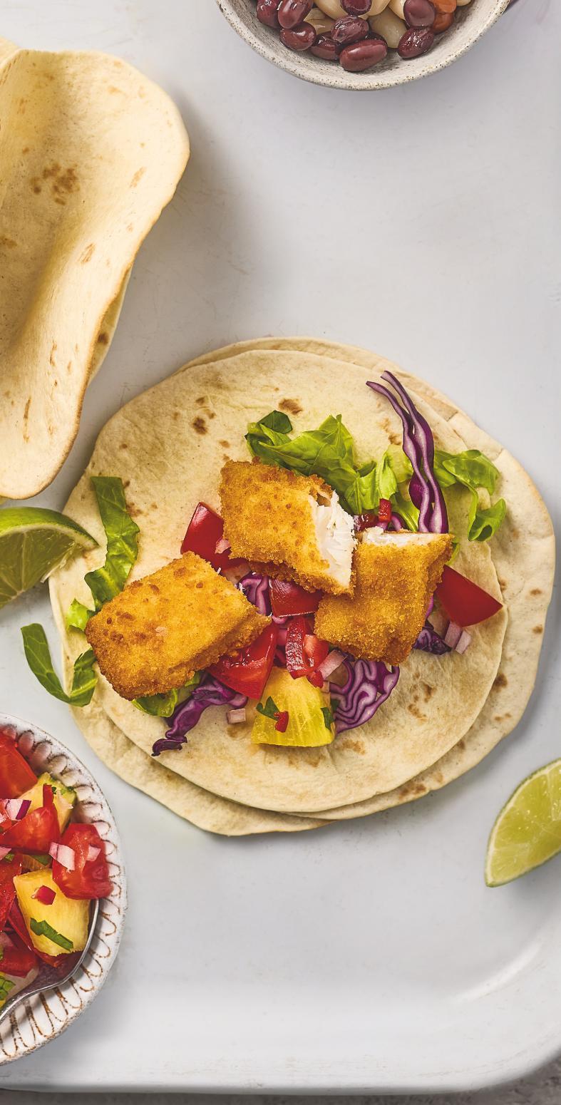 Soft- or hard-shell tortillas are the classic base – but you could use pittas or flatbreads for a similar result. Small wraps can be folded and popped in the toaster to turn them into hard-shell tacos.