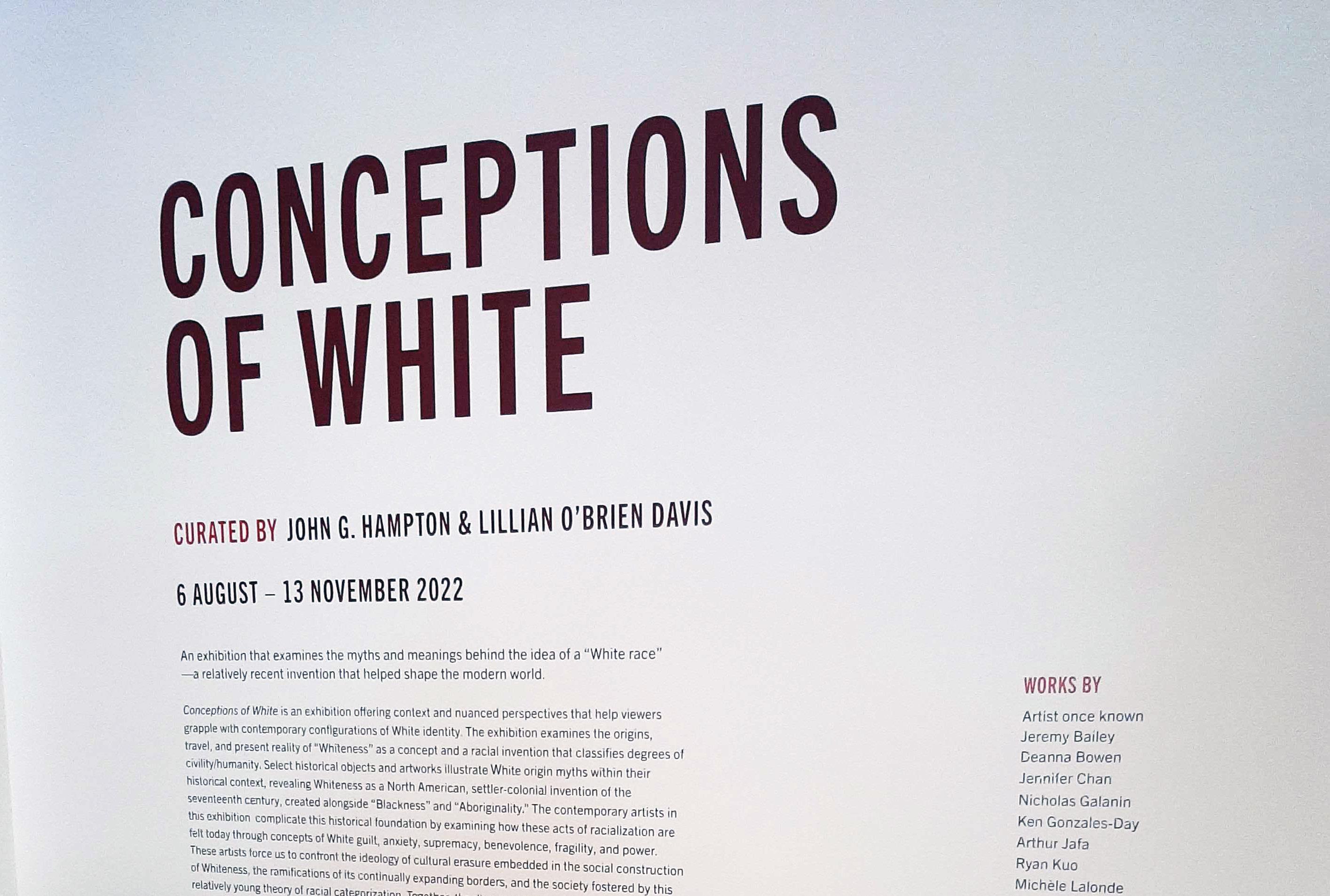 From August 6 to November 13, 2022, the Mackenzie Art Gallery presented an exhibition called Conceptions of White. The exhibition was curated by the Mackenzie Art Gallery’s Execu tive Director and CEO John G. Hampton and the Gallery 44’s Curator of Exhibitions and Pub lic Programming Lillian O’Brien Davis.