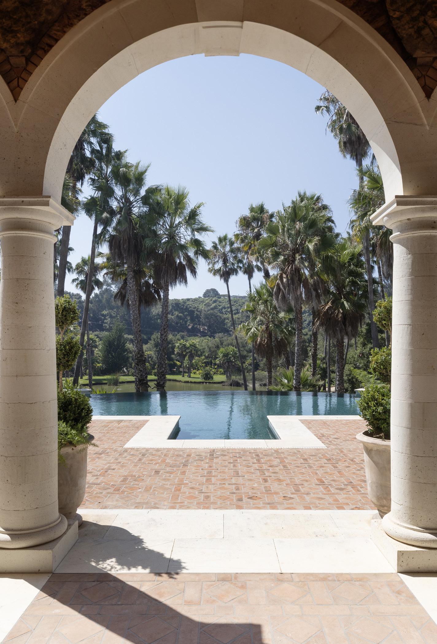 Enjoy a seamless flow that connects the grand entry foyer with the public rooms - all anchored by the dramatic central courtyard with a stone fireplace, tranquil fountain and beautiful symmetrical elements. The formal dining room leads to an eat-in chef’s kitchen complete with a tiled ceiling, which connects seamlessly to living and family rooms that open to the infinity-edge pool and dramatic loggia. The sumptuous primary suite is outfitted with dual spa-like ensuite bathrooms and spacious walk-in closets, and a private terrace overlooking the majestic grounds. Five additional ensuite guest-bedrooms, a library and a rooftop open-air gym with panoramic views of the estate and valley complete the main structure.