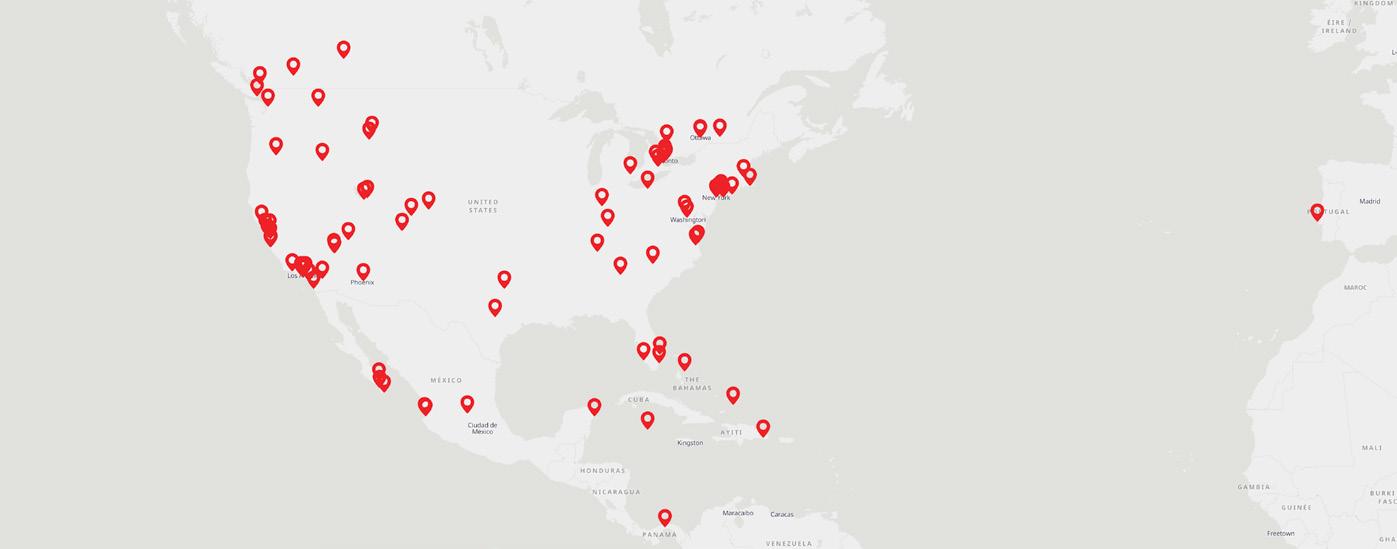 y Across the U.S., Canada, Mexico, Central America, Europe and the Caribbean