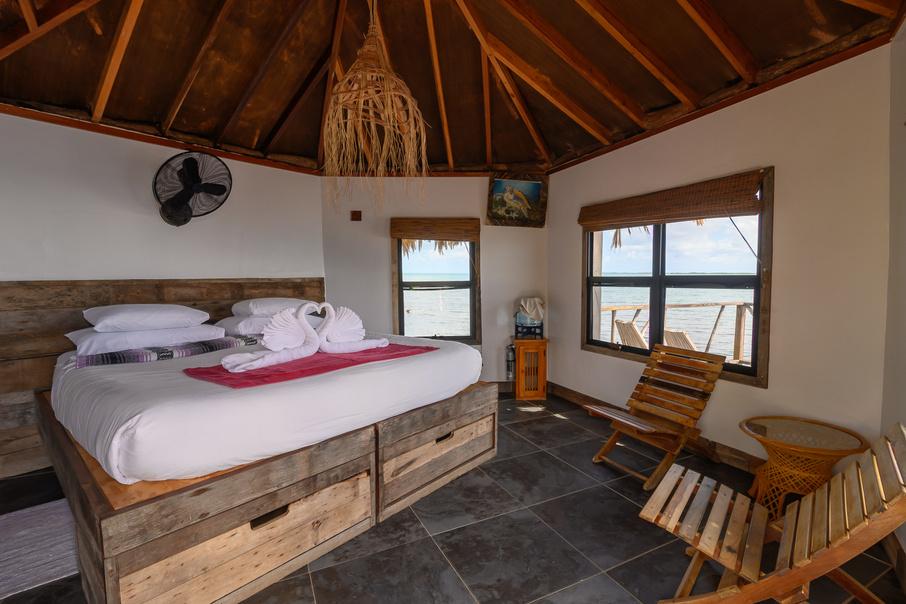 Vibrant original artwork by local Garifuna artists including Penn Cayetano and Benjamin Nicholas adorn the lobby walls and hallways. A Tony Rath Image gallery documents Belize’s spectacular natural wonders and on our seaside decks, the soothing rhythms of local music including Dangriga’s very own Punta Rock complete the truly Belizean atmosphere Our spacious rooms have a combination of bed options that can be adapted for individuals, couples, families and adult groups each with telephone, television, refrigerator, free WiFi and complimentary morning coffee Every room offerstheperfectatmosphereforrelaxationwith averandaandloungechairstoenjoytheviewof thegoldenbeach,coconuttrees,andthesound of the Caribbean waves coming onshore. We are the perfect base to explore the Mayan civilization, waterfalls and wildlife of the Belizean jungle. But if you prefer you can do nothing but count the pelicans flying by from your hammock!