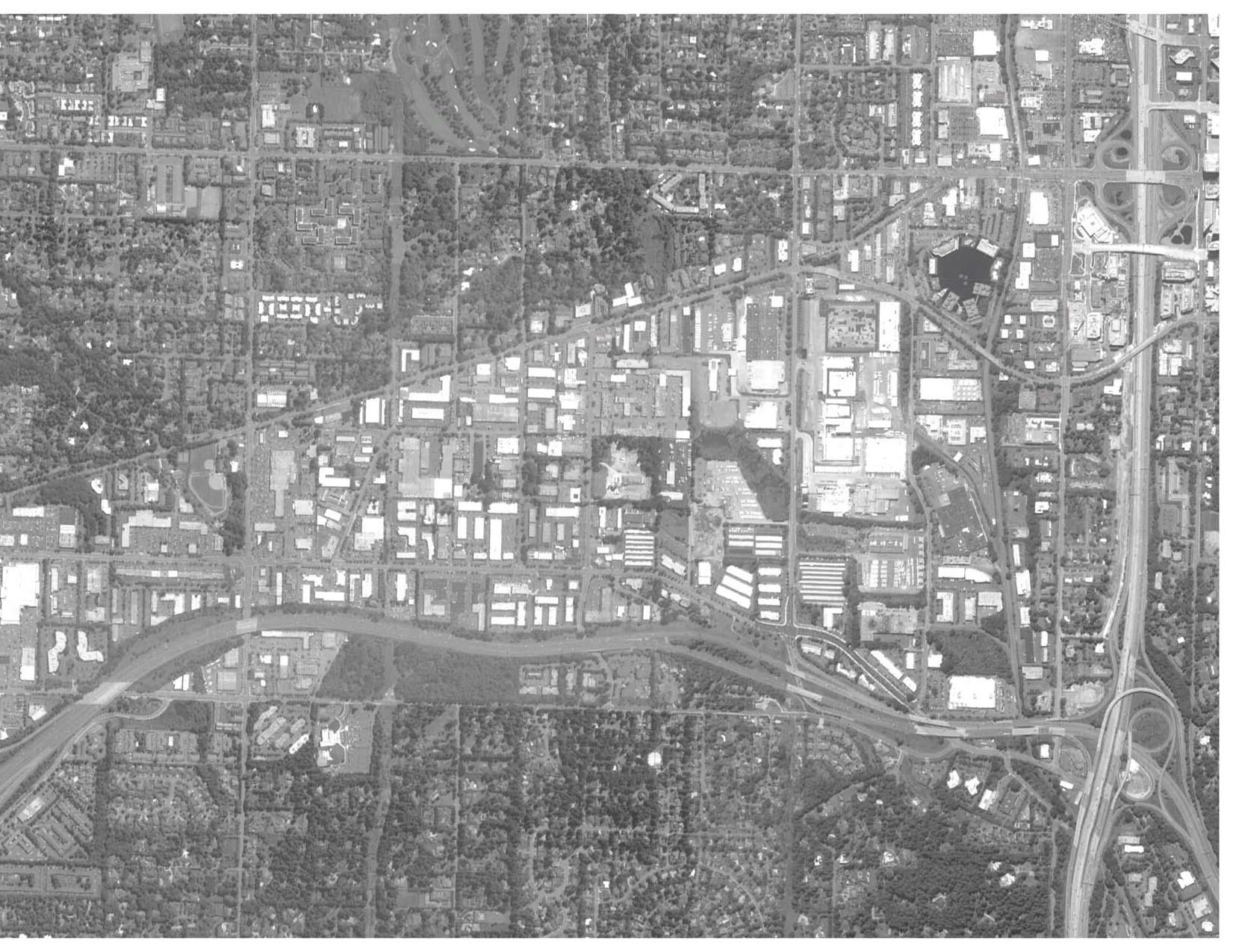 BelRed’s growth into a hub of light industry placed little emphasis on the development of public amenities. It is the absence of green space, when compared to the rest of the city, which makes BelRed easy to locate on a map.