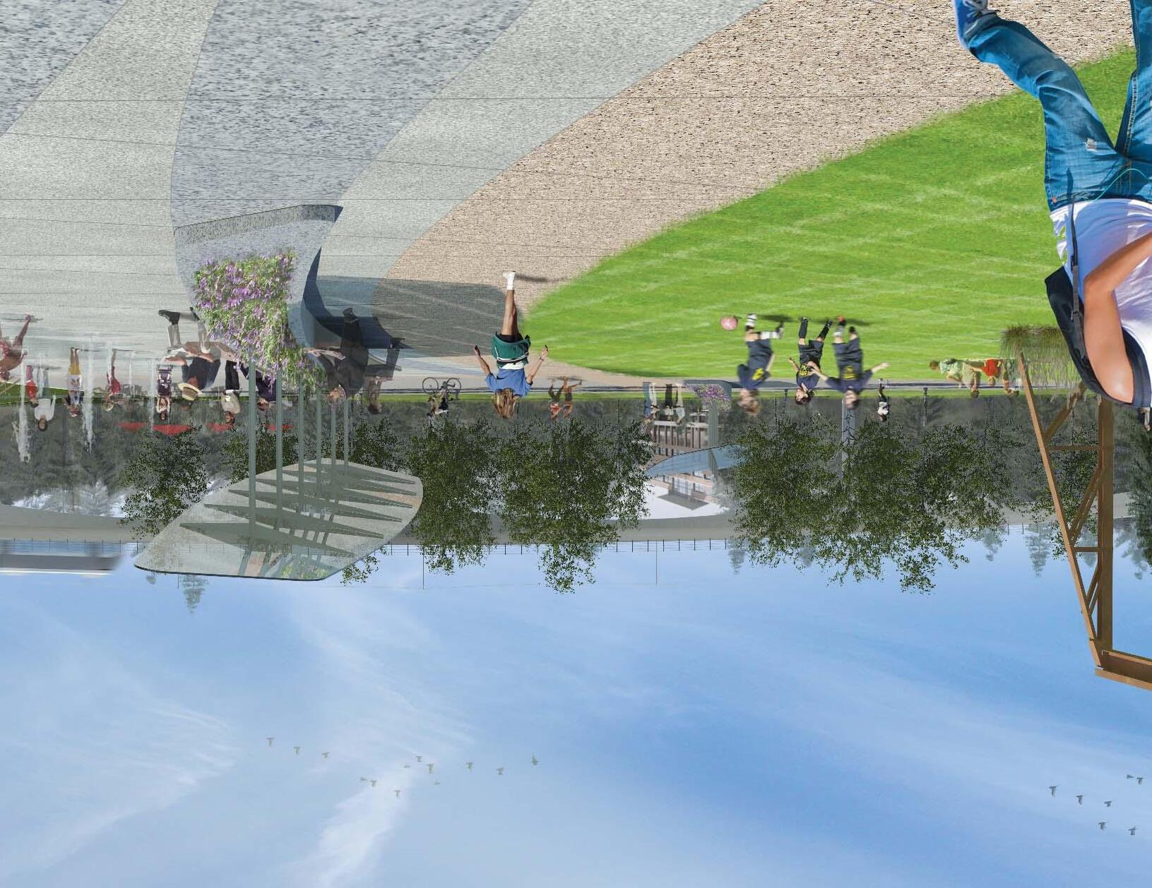 A series of publicly accessible parks, plazas and restored riparian corridors - developed by a combination of public and private development