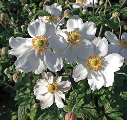 Anemones create stunning fall displays. The long-blooming, long-stemmed, and long-lasting ‘Honorine Jobert’ will have you creating bouquets for weeks. Once cut, flowers can last almost two weeks in the vase.