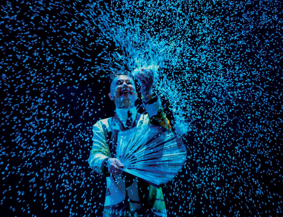 This may explain the inclusion of a handful of different tricks throughout Solo, including shadow puppetry and sandbox-drawing sections. ‘I get bored very quickly,’ Brachetti admits. ‘So I like to learn things all the time. During covid, I learned how to paint upside down! I’m always trying to find different ways to tell a story.’
