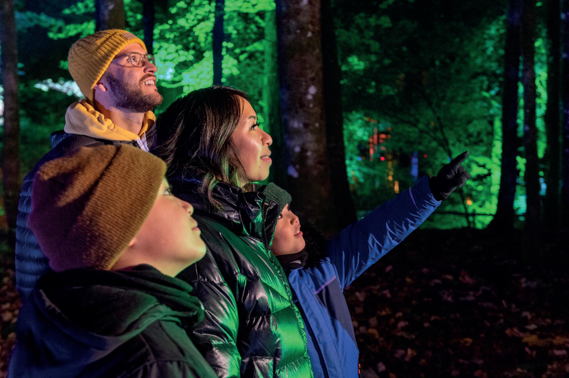 audience feedback, developed the theme and installations, sourced kit, and then worked with animators, composers and lighting designers to make everything a reality. ‘I absolutely love this process because I’m acutely aware as a parent that it’s my job to make this journey as engaging and immersive as possible. We’re living in a world where a lot of people don’t have that disposable income anymore, and for us it’s a privilege that people part with their hard-earned cash to come along to The Enchanted Forest; but it’s also a big responsibility.’