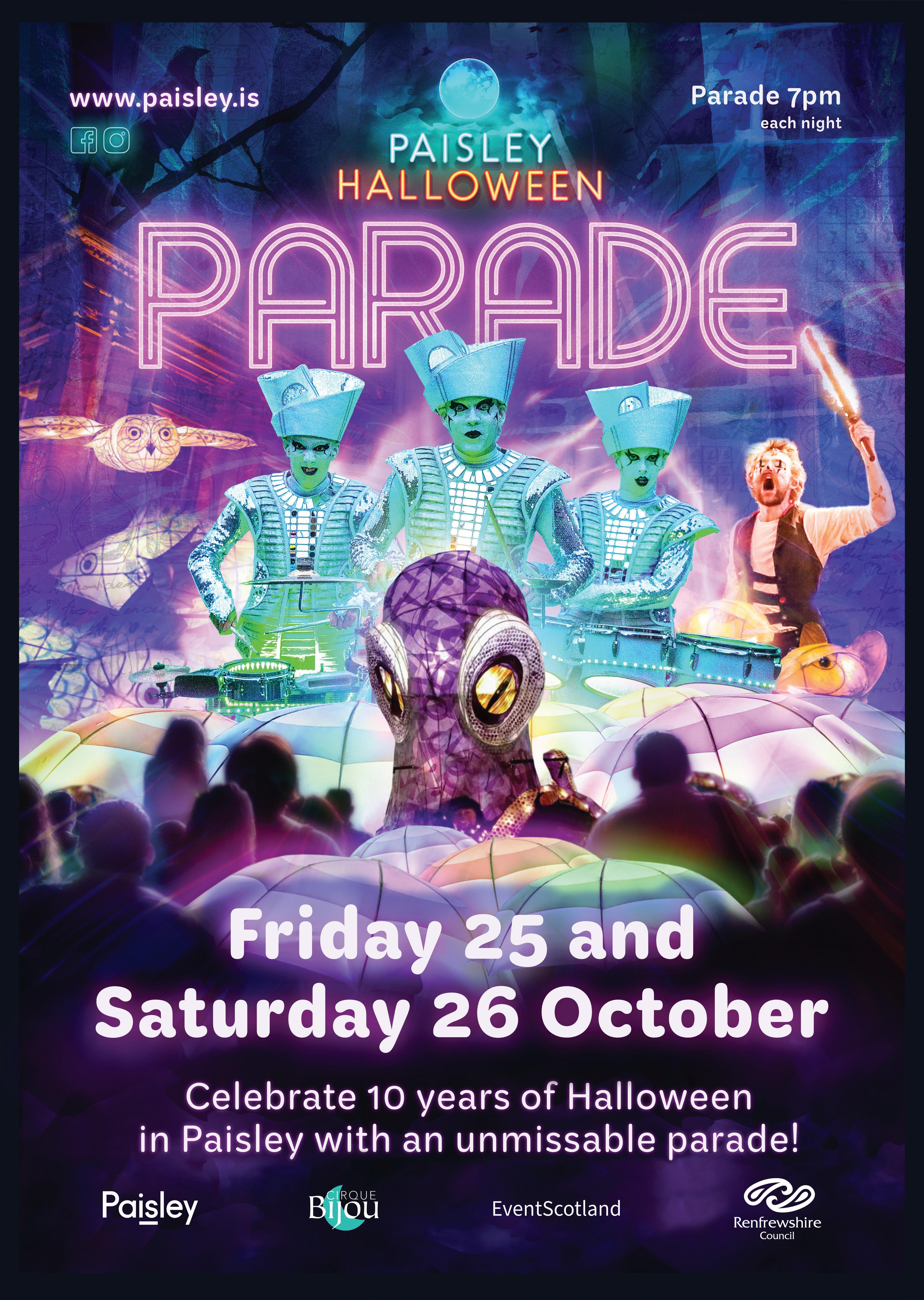 If Halloween is the highlight of the autumn season (and it clearly is) then Paisley is the place to be this October. For the first time since 2019 the muchloved parade will return on Friday 25 and Saturday 26 October, and there’s so much to see and do that there’s bound to be something for the whole family to enjoy.