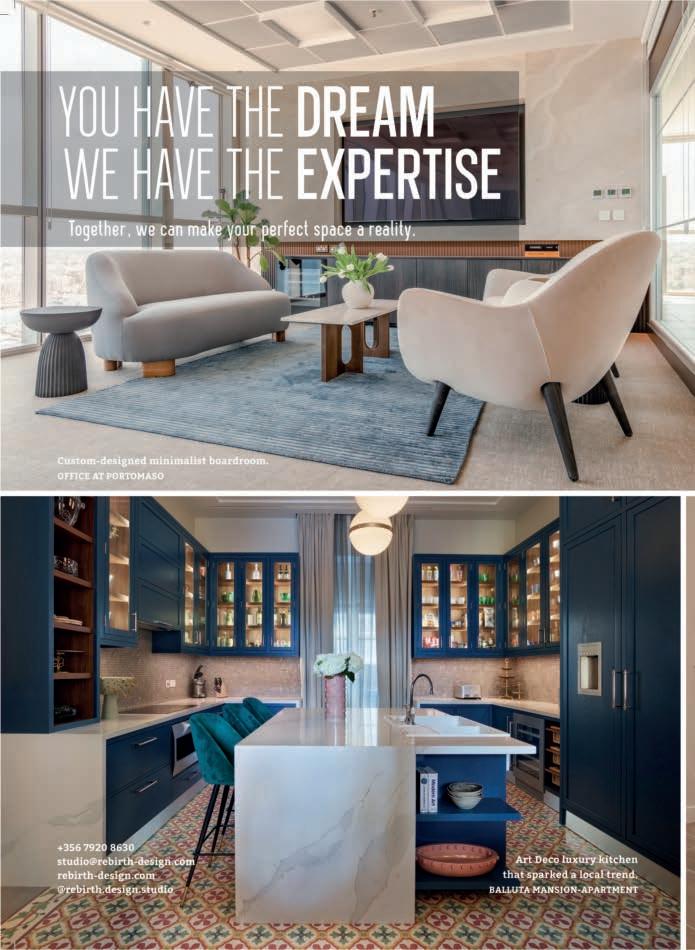 With all works at Palazzo Parisio now wrapped up, the Rebirth team is currently engaged in several other prominent projects across the islands. For more information about their extensive work, visit www.rebirth≠ design.com