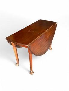 A small George II mahogany drop flap dining table The hinged oval top on tapering legs and pad feet, 133cm wide extended, 120cm deep, 71cm high.