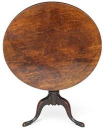 A George III mahogany tripod table The circular tilt top above a baluster turned shaft and cabriole legs with pad feet, 77cm diameter, 71cm high.