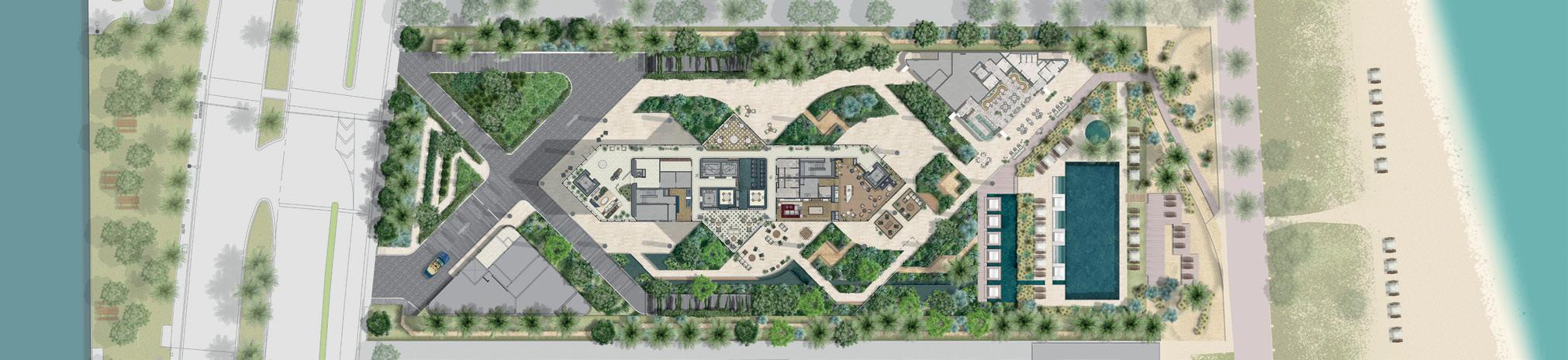 The Perigon is the world-renowned Office for Metropolitan Architecture’s (OMA’s) first residential masterpiece in Miami Beach. Responding to the blissful serenity of its setting, the building’s brilliant design ensures breathtaking views in every direction. Landscaping by Gustafson Porter + Bowman enfolds