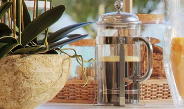 The Breakfast Room welcomes residents with the smell of freshly baked delights and opens out onto the Sunrise Terrace for indoor-outdoor enjoyment