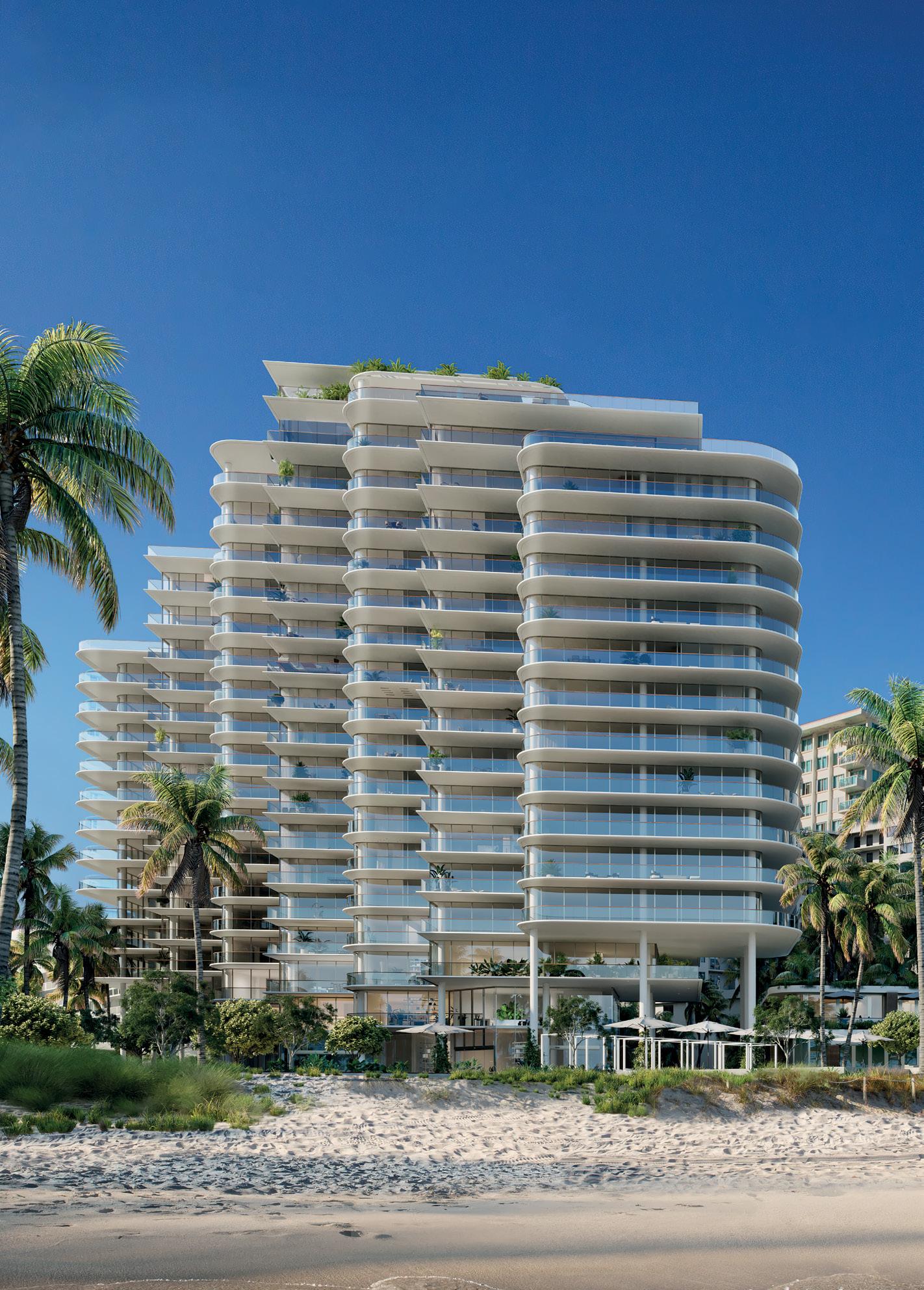 Seemingly afloat above lush gardens, The Perigon’s slender columns, soaring lines, and wraparound terraces are a true feat of design engineering, whereas its glass curves are a subtle nod to Miami Beach’s rich Art Deco heritage. Within the interlocked towers, residences with floor-to-ceiling windows and ample outdoor space combine the intimacy of singlefamily villas with the vistas of high-rise living.