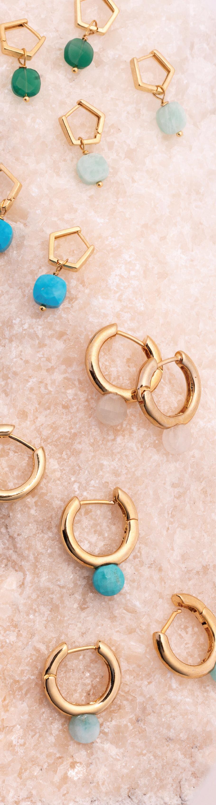 Chunky Stone Huggie Hoop Earrings