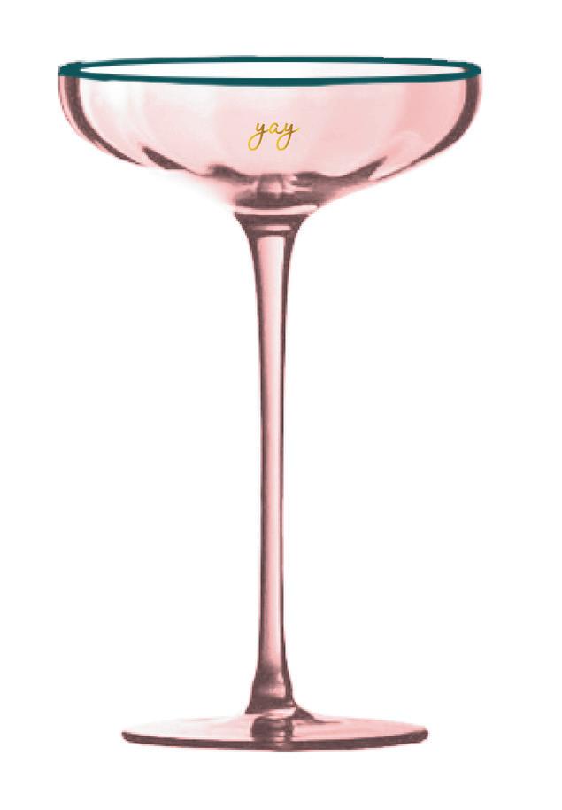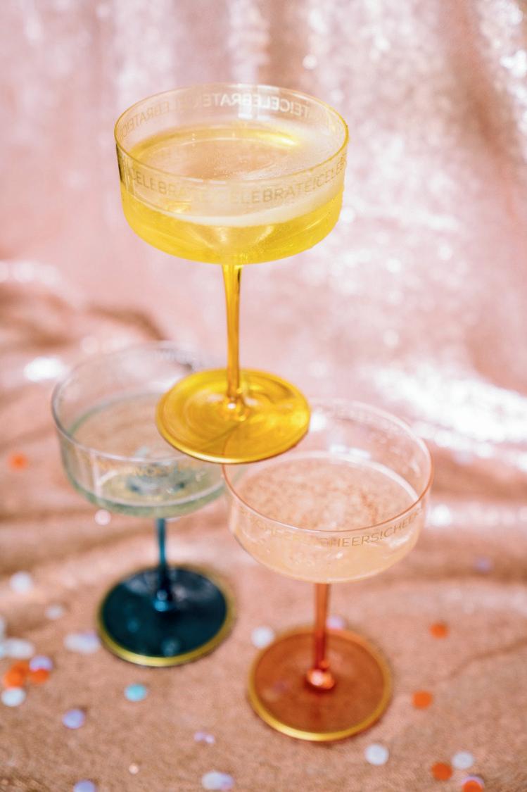 11 oz. colorful lead-free crystal coupe glass. Hand wash only.