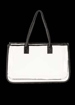 19.5” X 12” X 5.5” TOTE • 8.5” STRAPS • TRANSPARENT PVC & PU TRIM