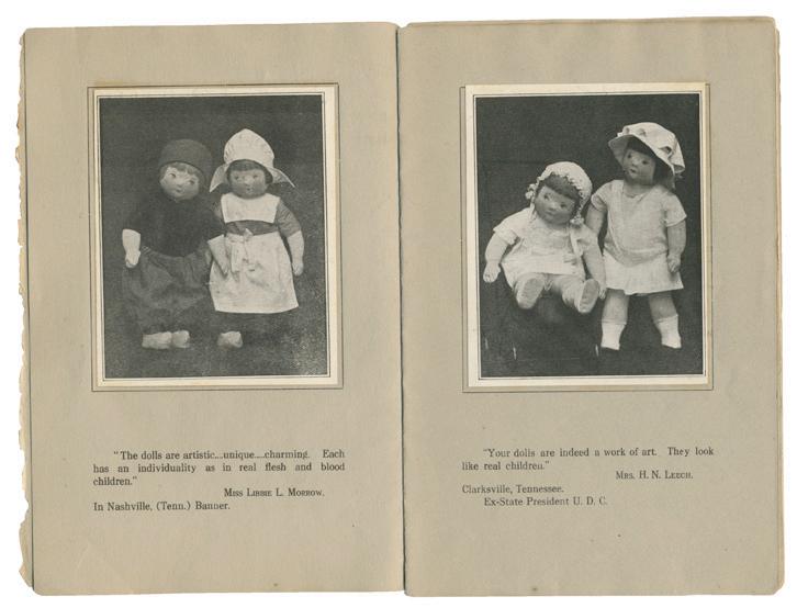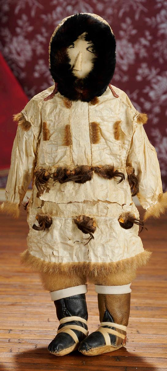 injure a young child which may fall upon it. It will preserve its appearance for a long time.” Value Points: this most prized of early American folk dolls has rare body style with blue sateen body cover and fine antique dress which is likely original.