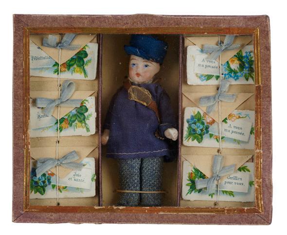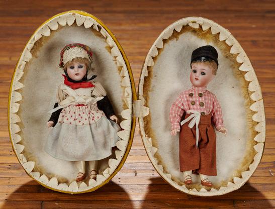 Comments: Germany, circa 1890. Value Points: especially pretty closed mouth doll on the original candy container form. $400/500