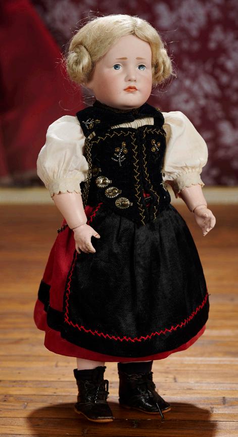 S&H 1. Comments: Simon and Halbig, circa 1895. Value Points: rare size of this model, very fine quality of bisque, original body and body finish, factory original costume. $1100/1300