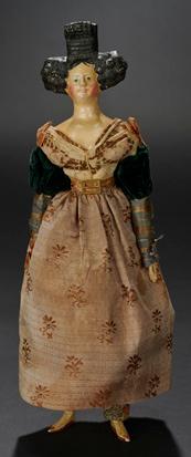 The auction, too, features dolls from private family homes. There is the grand 24” Simon and Halbig lady, model 152, gifted to Phebe Walker from her parents in 1913 on the occasion of her 12th birthday in Washington D.C. where she lived her entire life, and where her father was instrumental in building the famed Mayflower Hotel. And Nelle, the petite early Bru bébé that has lived with the family of the original owner, little Petronella Fredriks of Cincinnati whose Dutch immigrant father had purchased for her as young five-year-old girl. Too, there are dolls notable for their collector lineage such as the outstanding French art character doll by Albert Marque which was once a signature treasure in the famed Dina Vierny Collection. And the outstanding English wooden doll in extraordinary costume from the private collection of Madame X of London. And even the #1 Barbie with three rare costumes from the original child owner whose home it has never left.